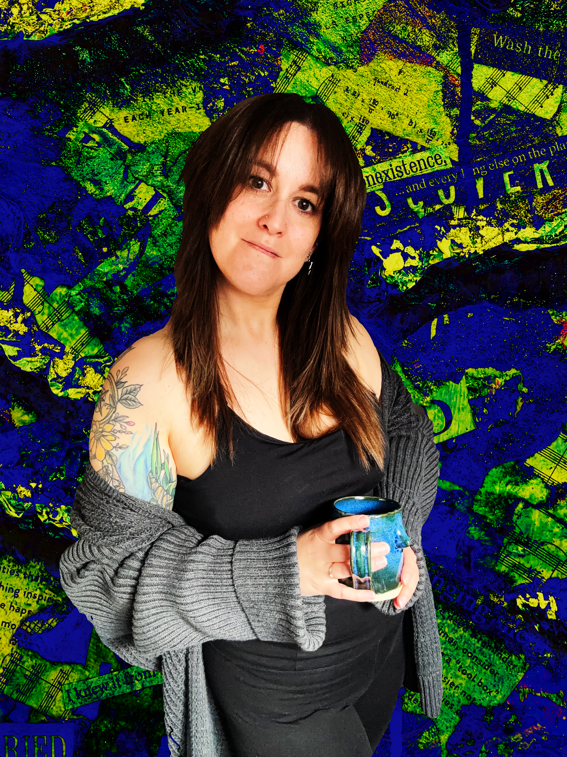 Anna creates layered artworks that explore texture, storytelling, and visual interplay; often incorporating found imagery, embellishments, glitter, and illustration. Through her art, personal experience becomes a space for reflection, inviting others to find their own meaning.