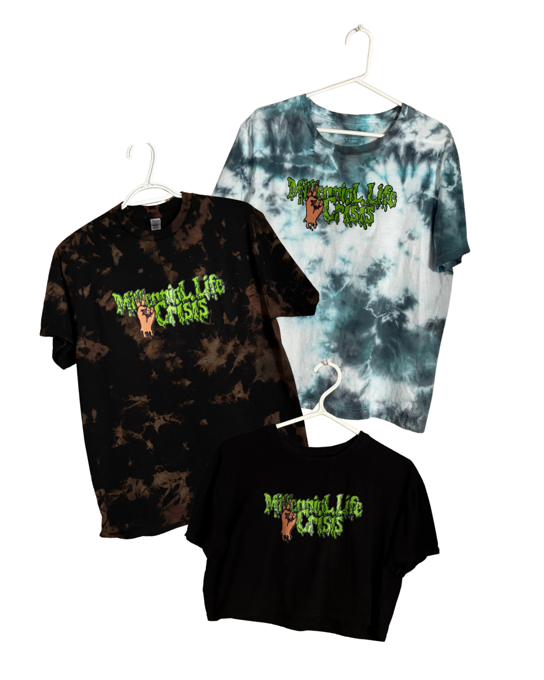 This design then became holographic sparkle stickers and upcycled thrifted t-shirts, where I used vinyl transfers to create sustainable, one-of-a-kind pieces. A little nostalgic, a little existential, and very millennial thing to make a brand out of it.
